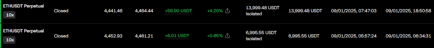 2025년 9월1일(월) Daily Trading | $1,457 → $1,522(+4.5%)